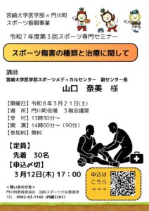 第1回、第2回と宮崎大学医学部スポーツメディカルセンターより先生をお招きし、開催してきました。